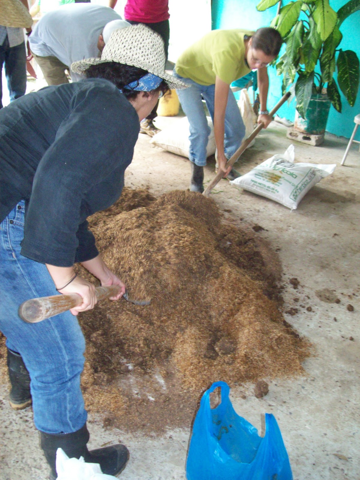 Mixing up an organic fertilizer called bocashi. |